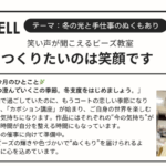キミエールへようこそ!毎日をもっと楽しく。アクセサリー作りを日常にプラスして、今も未来もワクワク過ごせる日々をご提案します。趣味としても、講師として活躍したいあなた(君)も応援(エール)します。一緒にビーズライフを楽しみましょう。 新着情報 【2025-11-14】街の発明家・片山ひよしさん【2025-11-10】🎄Holiday Sparkle 〜クリスマスにつけたいビーズアクセサリーセミナー〜【2025-10-25】キミエール通信VOL.8【2025-10-22】ハートを満たす、魔法のアクセサリー【2025-10-14】『ビーズアート&ジュエリー展2025』 公式ブログへ 各種講座紹介