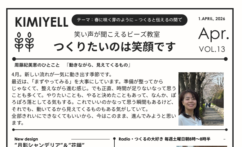 🌿 キミエール通信 VOL.13 – April ✨ 今月のひとこと「動きながら、見えてくるもの」 4月。新しい流れが一気に動き出す季節です。 最近は、「まずやってみる」を大事にしています。 […]